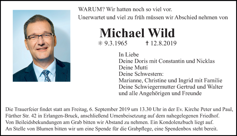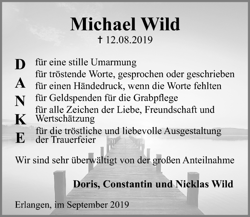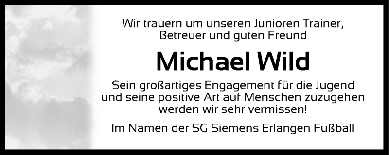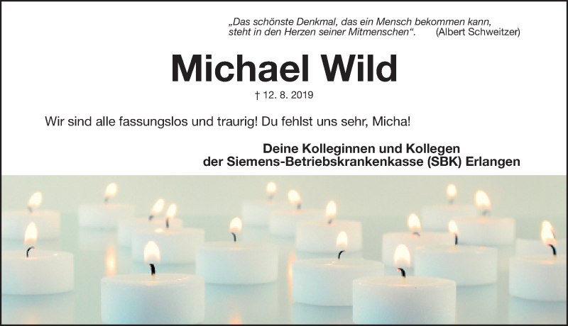 Hier finden Sie alle Traueranzeigen aus der Zeitung, die bisher für Michael Wild erschienen sind. Weitere Traueranzeigen, die in der Zeitung erscheinen, werden hier ebenfalls aufgelistet