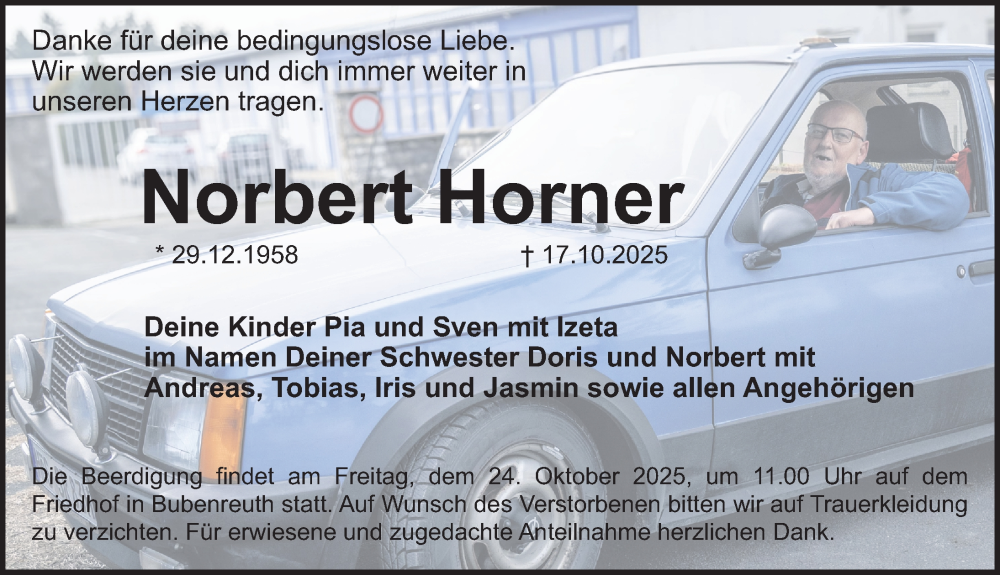 Hier finden Sie alle Traueranzeigen aus der Zeitung, die bisher für Norbert Horner erschienen sind. Weitere Traueranzeigen, die in der Zeitung erscheinen, werden hier ebenfalls aufgelistet
