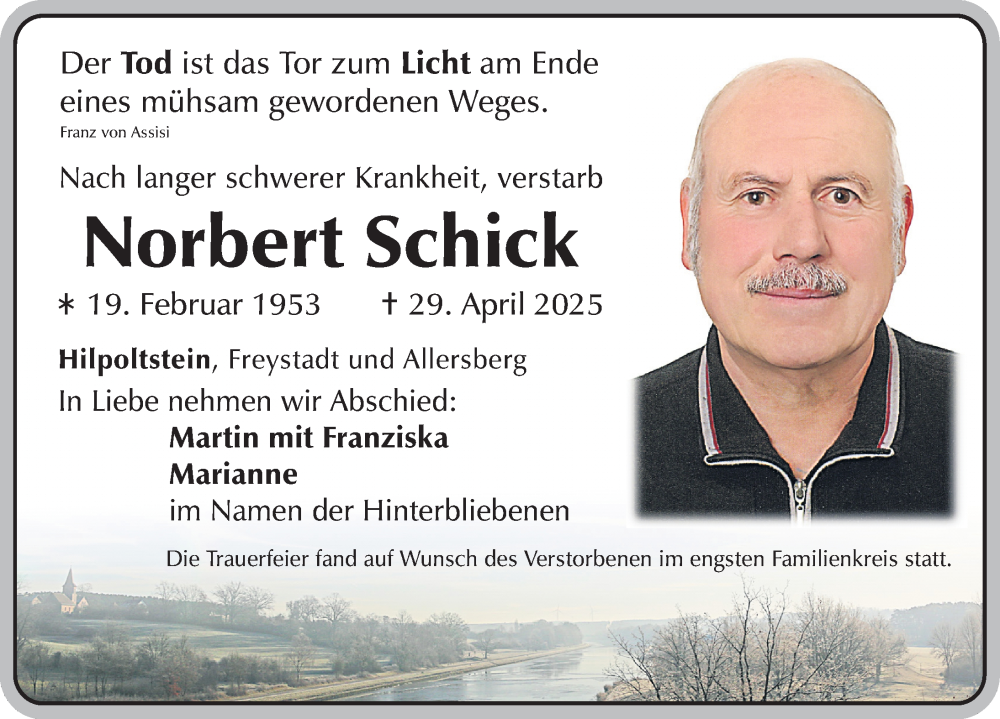 Hier finden Sie alle Traueranzeigen aus der Zeitung, die bisher für Norbert Schick erschienen sind. Weitere Traueranzeigen, die in der Zeitung erscheinen, werden hier ebenfalls aufgelistet
