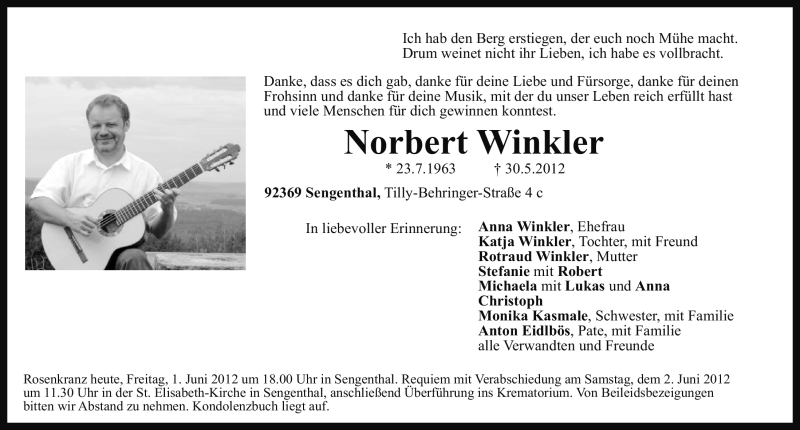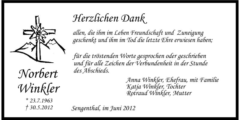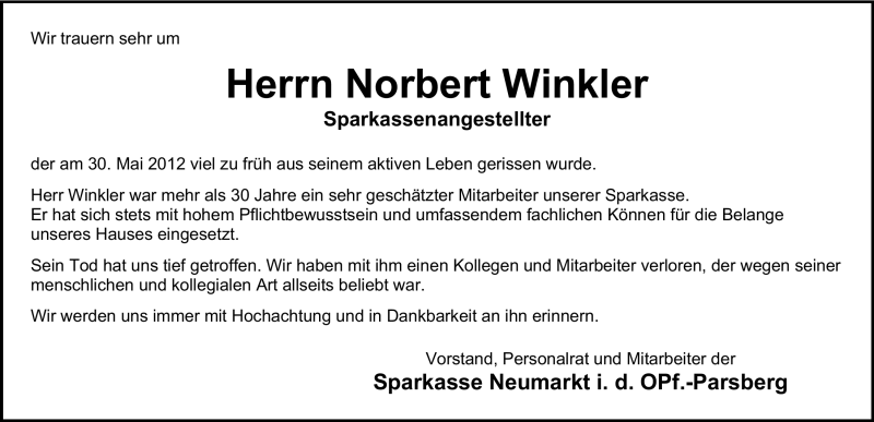 Hier finden Sie alle Traueranzeigen aus der Zeitung, die bisher für Norbert Winkler erschienen sind. Weitere Traueranzeigen, die in der Zeitung erscheinen, werden hier ebenfalls aufgelistet