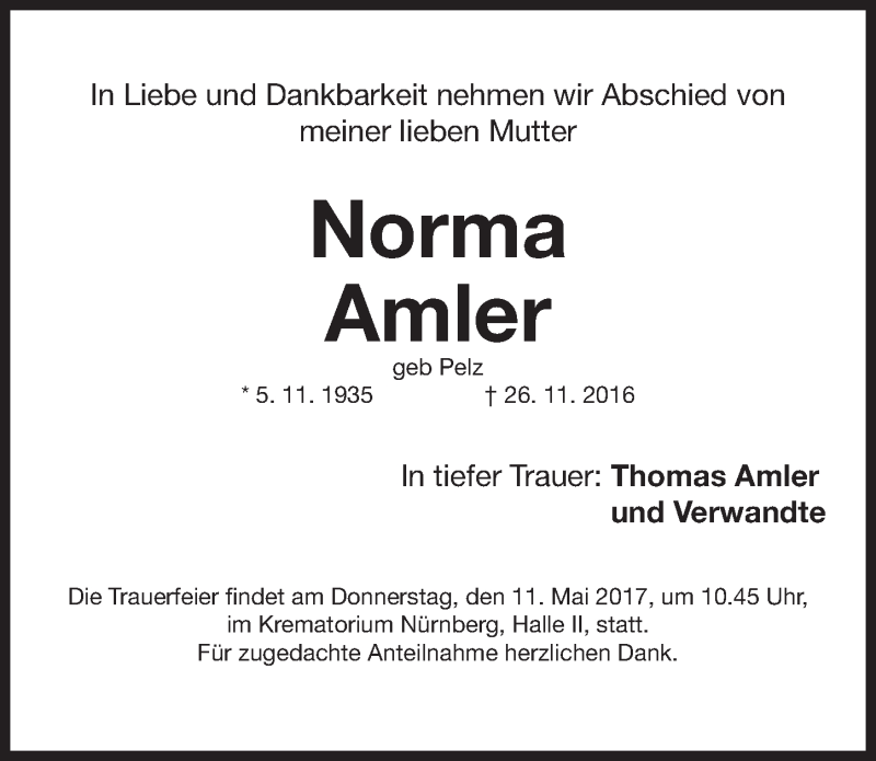 Hier finden Sie alle Traueranzeigen aus der Zeitung, die bisher für Norma Amler erschienen sind. Weitere Traueranzeigen, die in der Zeitung erscheinen, werden hier ebenfalls aufgelistet