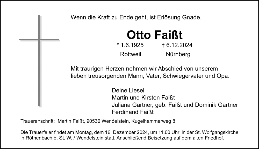 Hier finden Sie alle Traueranzeigen aus der Zeitung, die bisher für Otto Faißt erschienen sind. Weitere Traueranzeigen, die in der Zeitung erscheinen, werden hier ebenfalls aufgelistet
