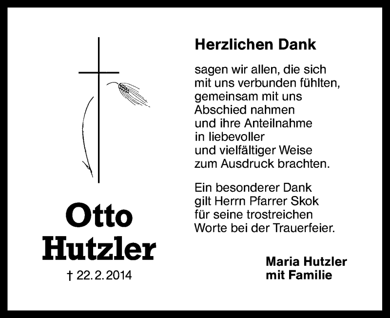 Hier finden Sie alle Traueranzeigen aus der Zeitung, die bisher für Otto Hutzler erschienen sind. Weitere Traueranzeigen, die in der Zeitung erscheinen, werden hier ebenfalls aufgelistet
