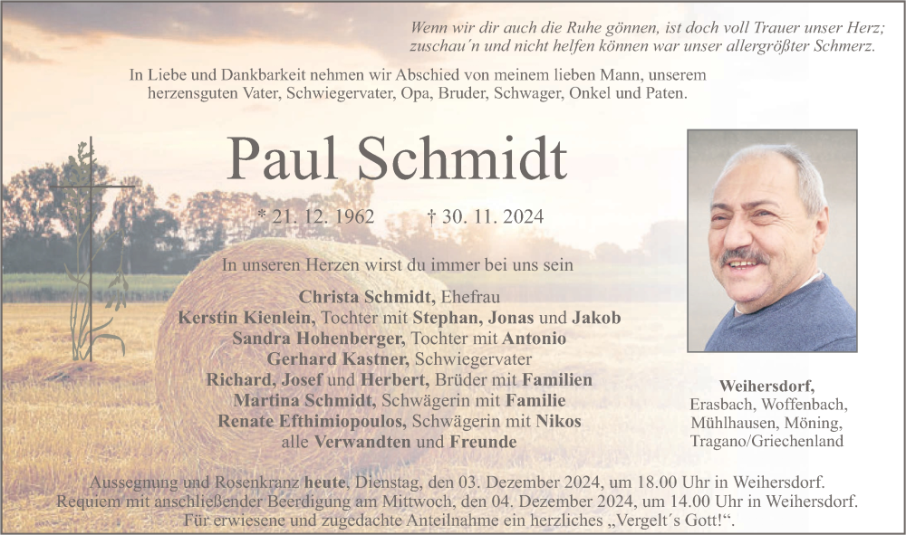 Hier finden Sie alle Traueranzeigen aus der Zeitung, die bisher für Paul Schmidt erschienen sind. Weitere Traueranzeigen, die in der Zeitung erscheinen, werden hier ebenfalls aufgelistet