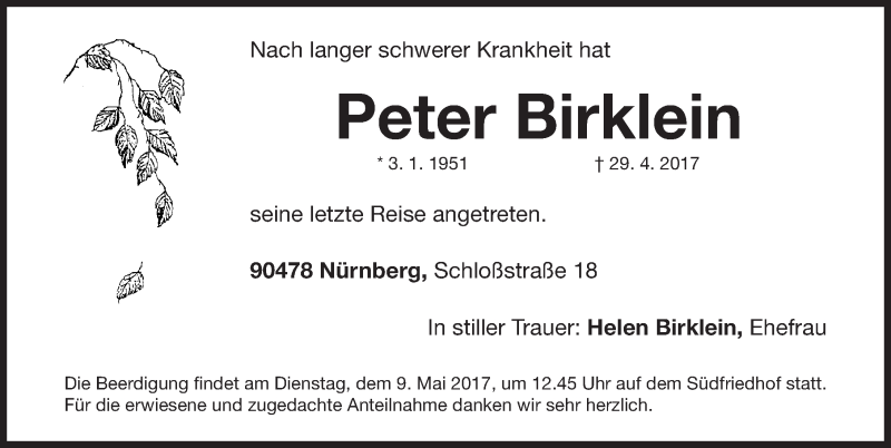 Hier finden Sie alle Traueranzeigen aus der Zeitung, die bisher für Peter Birklein erschienen sind. Weitere Traueranzeigen, die in der Zeitung erscheinen, werden hier ebenfalls aufgelistet
