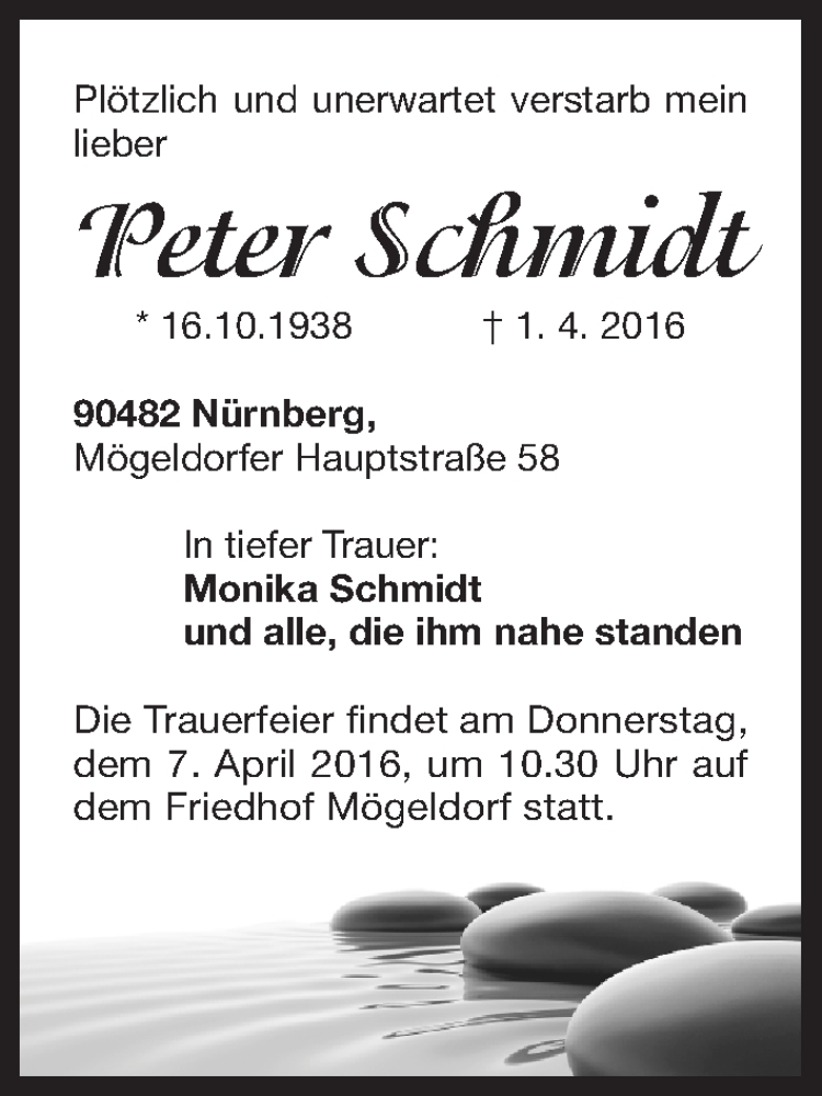 Hier finden Sie alle Traueranzeigen aus der Zeitung, die bisher für Peter Schmidt erschienen sind. Weitere Traueranzeigen, die in der Zeitung erscheinen, werden hier ebenfalls aufgelistet