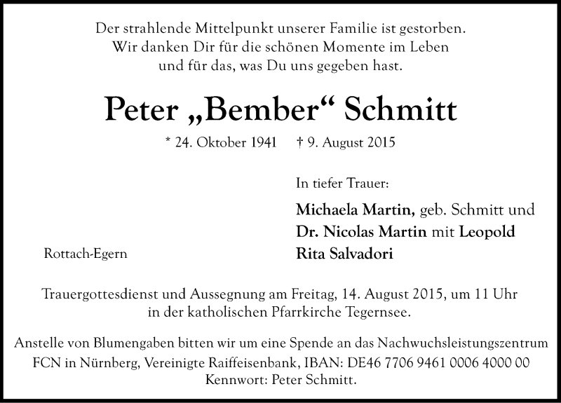 Hier finden Sie alle Traueranzeigen aus der Zeitung, die bisher für Peter Schmitt erschienen sind. Weitere Traueranzeigen, die in der Zeitung erscheinen, werden hier ebenfalls aufgelistet