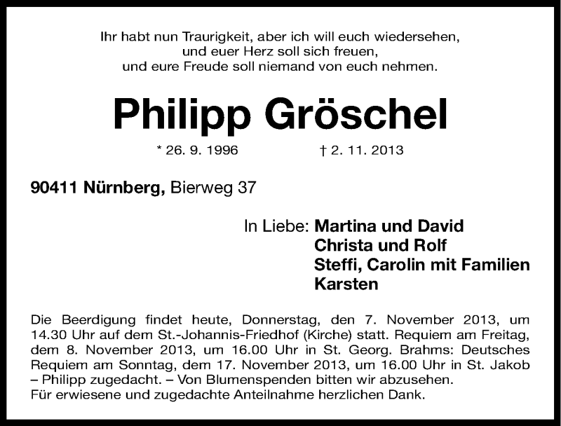 Hier finden Sie alle Traueranzeigen aus der Zeitung, die bisher für Philipp Gröschl erschienen sind. Weitere Traueranzeigen, die in der Zeitung erscheinen, werden hier ebenfalls aufgelistet