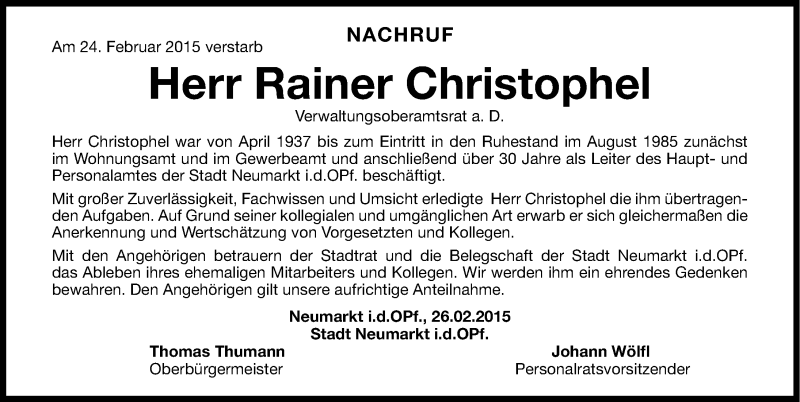 Hier finden Sie alle Traueranzeigen aus der Zeitung, die bisher für Rainer Christophel erschienen sind. Weitere Traueranzeigen, die in der Zeitung erscheinen, werden hier ebenfalls aufgelistet