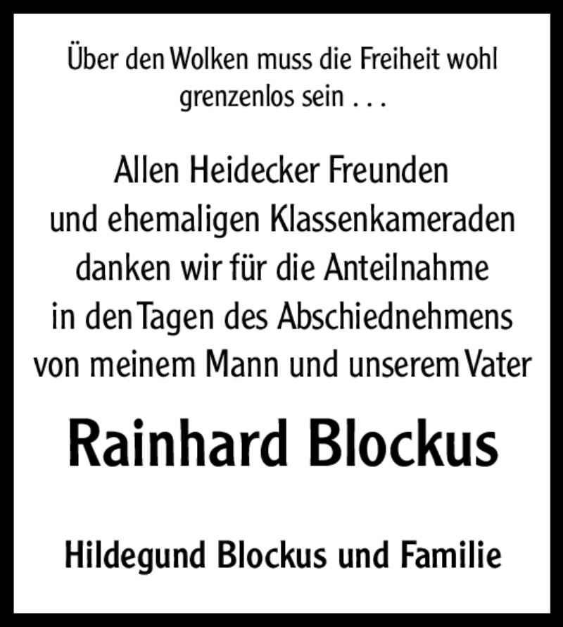 Hier finden Sie alle Traueranzeigen aus der Zeitung, die bisher für Rainhard Blockus erschienen sind. Weitere Traueranzeigen, die in der Zeitung erscheinen, werden hier ebenfalls aufgelistet
