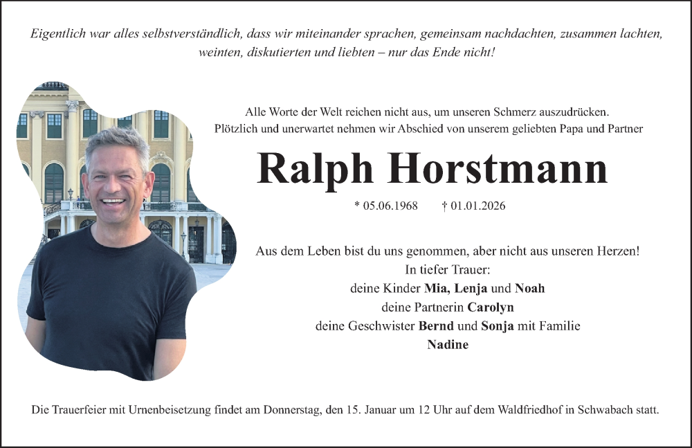 Hier finden Sie alle Traueranzeigen aus der Zeitung, die bisher für Ralph Horstmann erschienen sind. Weitere Traueranzeigen, die in der Zeitung erscheinen, werden hier ebenfalls aufgelistet