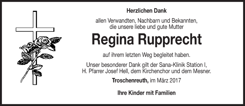 Hier finden Sie alle Traueranzeigen aus der Zeitung, die bisher für Regina Rupprecht erschienen sind. Weitere Traueranzeigen, die in der Zeitung erscheinen, werden hier ebenfalls aufgelistet