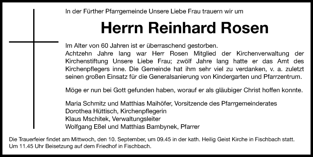 Hier finden Sie alle Traueranzeigen aus der Zeitung, die bisher für Reinhard Rosen erschienen sind. Weitere Traueranzeigen, die in der Zeitung erscheinen, werden hier ebenfalls aufgelistet