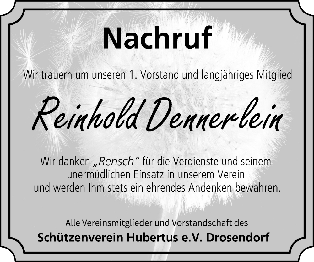 Hier finden Sie alle Traueranzeigen aus der Zeitung, die bisher für Reinhold Dennerlein erschienen sind. Weitere Traueranzeigen, die in der Zeitung erscheinen, werden hier ebenfalls aufgelistet
