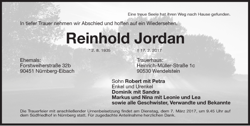 Hier finden Sie alle Traueranzeigen aus der Zeitung, die bisher für Reinhold Jordan erschienen sind. Weitere Traueranzeigen, die in der Zeitung erscheinen, werden hier ebenfalls aufgelistet