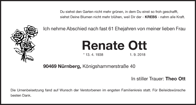 Hier finden Sie alle Traueranzeigen aus der Zeitung, die bisher für Renate Ott erschienen sind. Weitere Traueranzeigen, die in der Zeitung erscheinen, werden hier ebenfalls aufgelistet
