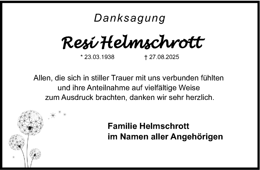 Hier finden Sie alle Traueranzeigen aus der Zeitung, die bisher für Resi Helmschrott erschienen sind. Weitere Traueranzeigen, die in der Zeitung erscheinen, werden hier ebenfalls aufgelistet