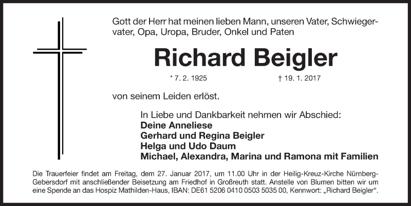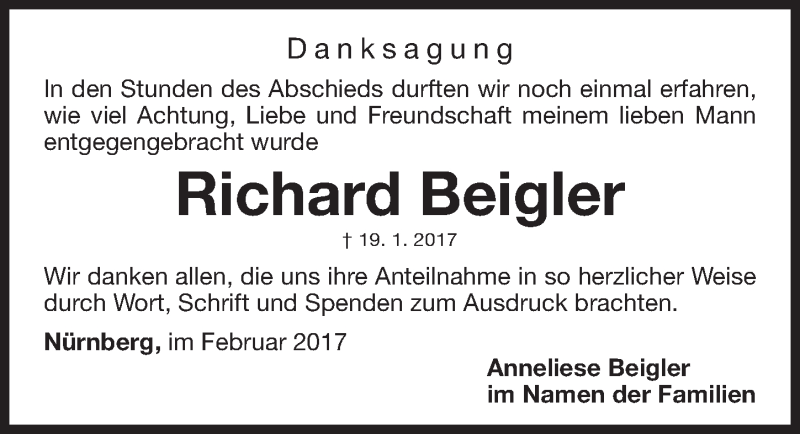 Hier finden Sie alle Traueranzeigen aus der Zeitung, die bisher für Richard Beigler erschienen sind. Weitere Traueranzeigen, die in der Zeitung erscheinen, werden hier ebenfalls aufgelistet