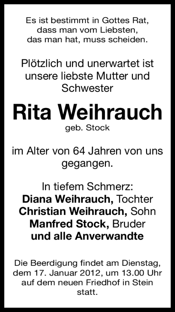 Hier finden Sie alle Traueranzeigen aus der Zeitung, die bisher für Rita Weiherich erschienen sind. Weitere Traueranzeigen, die in der Zeitung erscheinen, werden hier ebenfalls aufgelistet