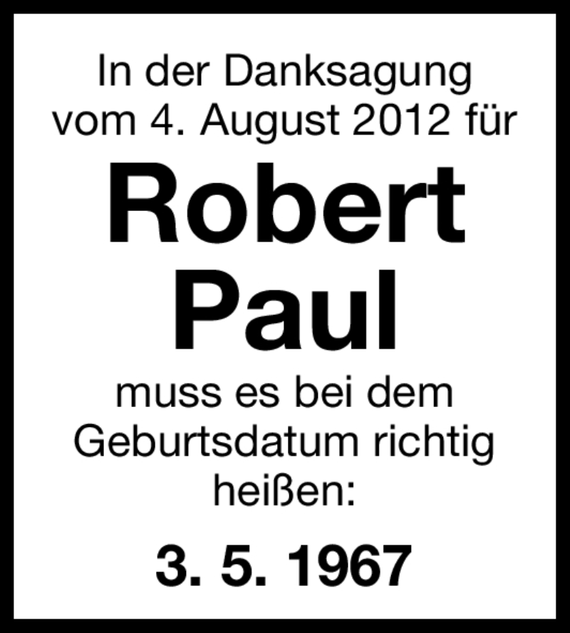 Hier finden Sie alle Traueranzeigen aus der Zeitung, die bisher für Robert Paul erschienen sind. Weitere Traueranzeigen, die in der Zeitung erscheinen, werden hier ebenfalls aufgelistet