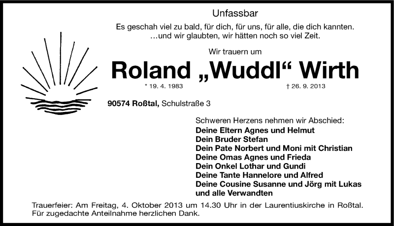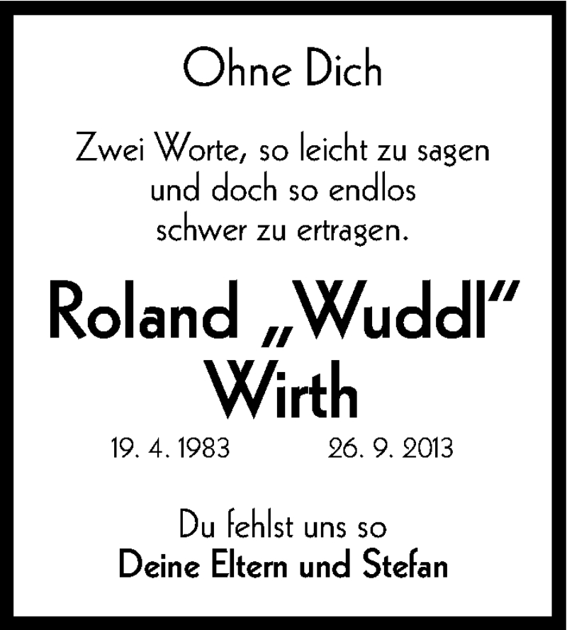 Hier finden Sie alle Traueranzeigen aus der Zeitung, die bisher für Roland Wirth erschienen sind. Weitere Traueranzeigen, die in der Zeitung erscheinen, werden hier ebenfalls aufgelistet