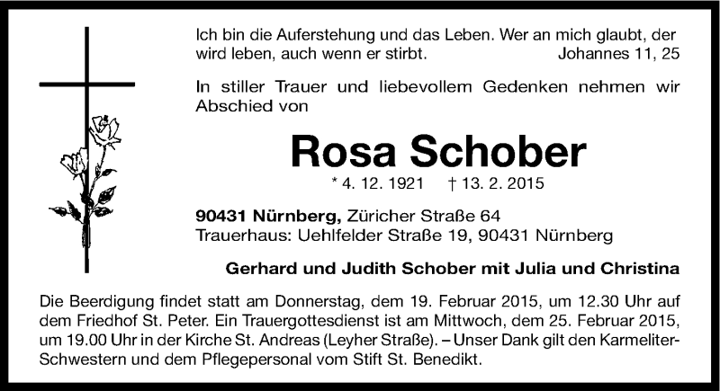 Hier finden Sie alle Traueranzeigen aus der Zeitung, die bisher für Rosa Schober erschienen sind. Weitere Traueranzeigen, die in der Zeitung erscheinen, werden hier ebenfalls aufgelistet