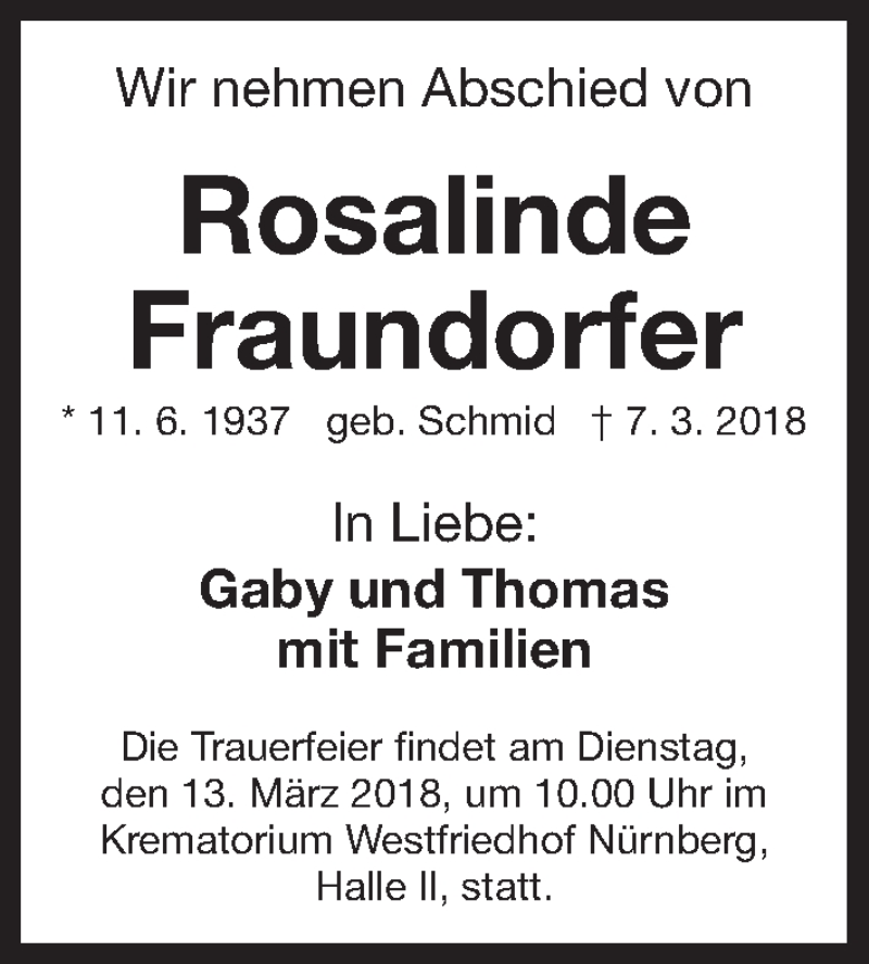 Hier finden Sie alle Traueranzeigen aus der Zeitung, die bisher für Rosalinde Fraundorfer erschienen sind. Weitere Traueranzeigen, die in der Zeitung erscheinen, werden hier ebenfalls aufgelistet