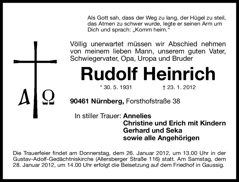 Hier finden Sie alle Traueranzeigen aus der Zeitung, die bisher für Rudolf Heinrich erschienen sind. Weitere Traueranzeigen, die in der Zeitung erscheinen, werden hier ebenfalls aufgelistet