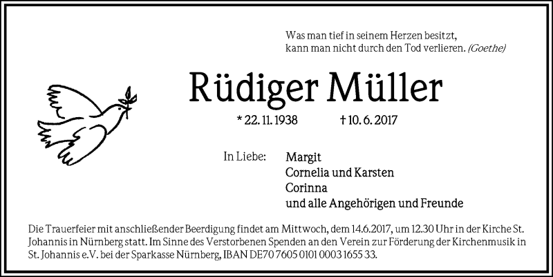 Hier finden Sie alle Traueranzeigen aus der Zeitung, die bisher für Rüdiger Müller erschienen sind. Weitere Traueranzeigen, die in der Zeitung erscheinen, werden hier ebenfalls aufgelistet