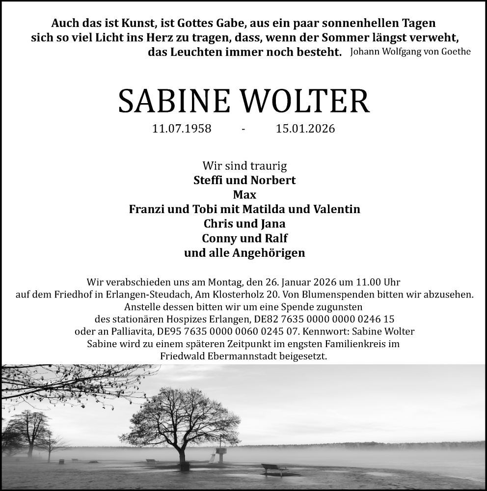 Hier finden Sie alle Traueranzeigen aus der Zeitung, die bisher für Sabine Wolter erschienen sind. Weitere Traueranzeigen, die in der Zeitung erscheinen, werden hier ebenfalls aufgelistet