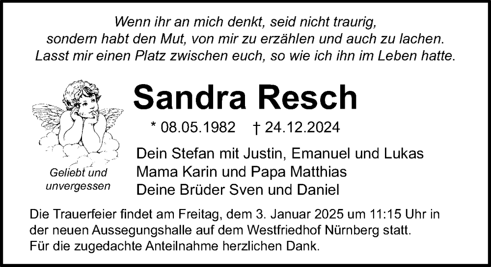 Hier finden Sie alle Traueranzeigen aus der Zeitung, die bisher für Sandra Resch erschienen sind. Weitere Traueranzeigen, die in der Zeitung erscheinen, werden hier ebenfalls aufgelistet