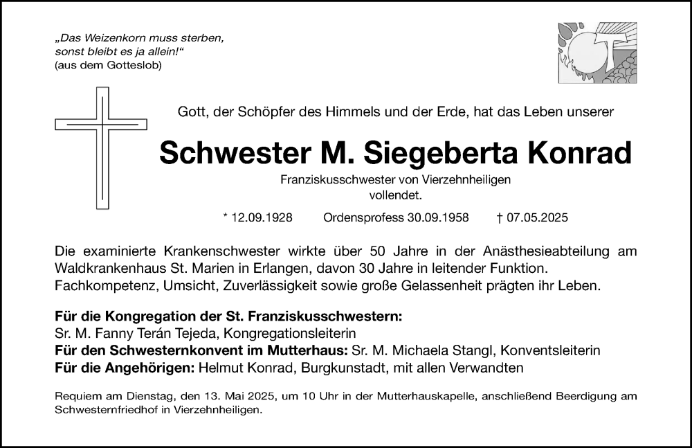 Hier finden Sie alle Traueranzeigen aus der Zeitung, die bisher für Siegeberta Konrad erschienen sind. Weitere Traueranzeigen, die in der Zeitung erscheinen, werden hier ebenfalls aufgelistet