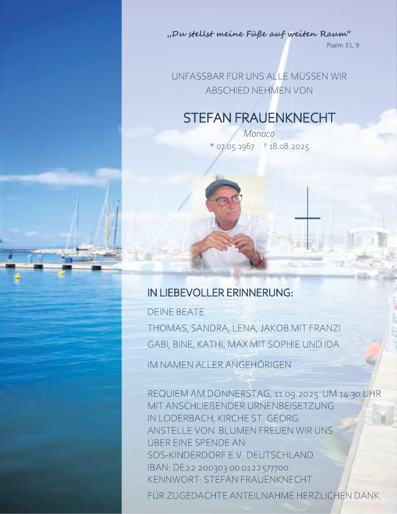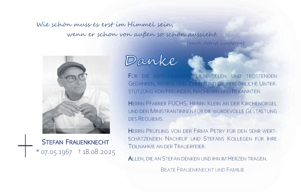 Hier finden Sie alle Traueranzeigen aus der Zeitung, die bisher für Stefan Frauenknecht erschienen sind. Weitere Traueranzeigen, die in der Zeitung erscheinen, werden hier ebenfalls aufgelistet