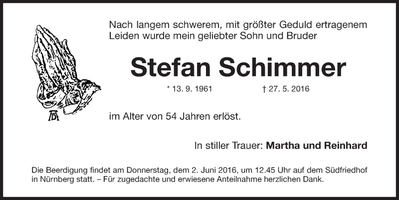 Hier finden Sie alle Traueranzeigen aus der Zeitung, die bisher für Stefan Schimmer erschienen sind. Weitere Traueranzeigen, die in der Zeitung erscheinen, werden hier ebenfalls aufgelistet