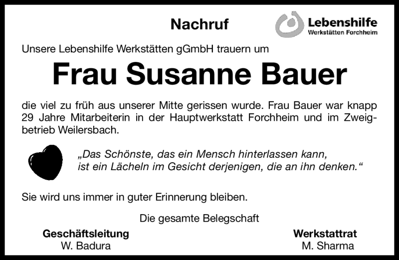 Hier finden Sie alle Traueranzeigen aus der Zeitung, die bisher für Susanne Bauer erschienen sind. Weitere Traueranzeigen, die in der Zeitung erscheinen, werden hier ebenfalls aufgelistet