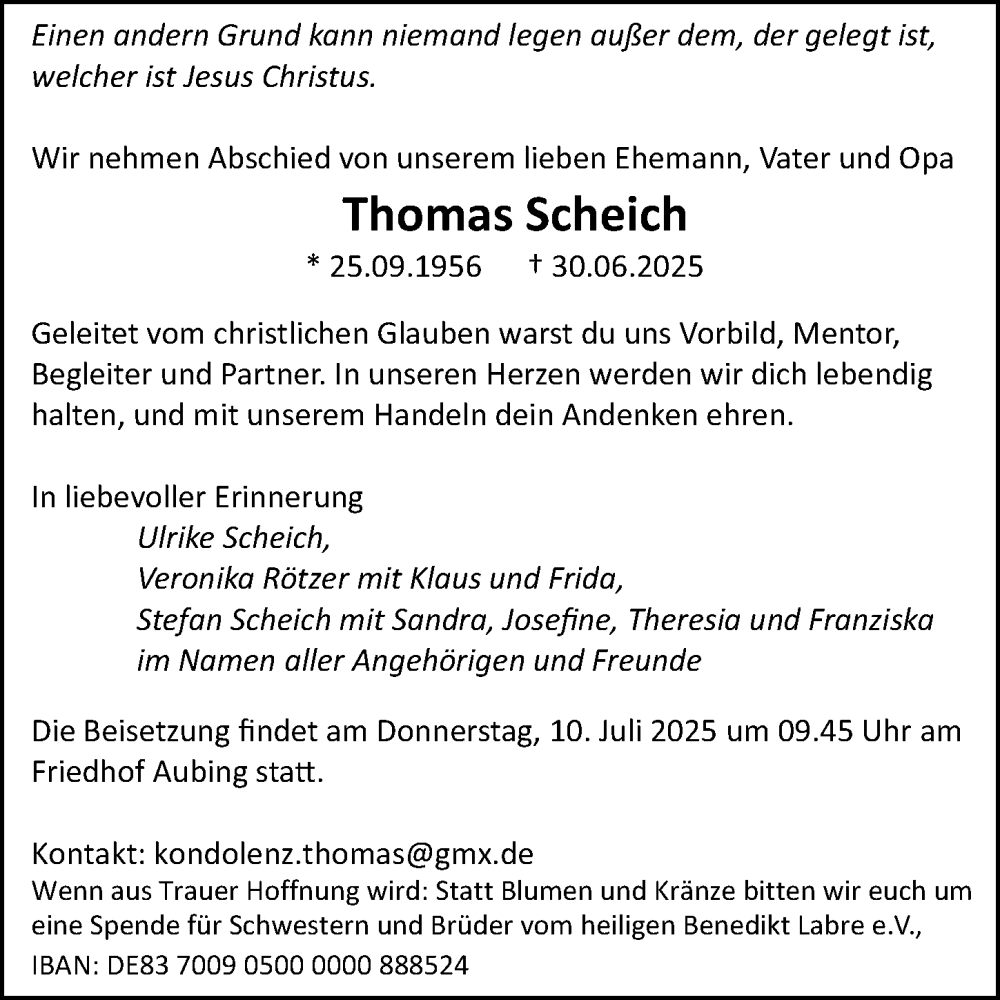 Hier finden Sie alle Traueranzeigen aus der Zeitung, die bisher für Thomas Scheich erschienen sind. Weitere Traueranzeigen, die in der Zeitung erscheinen, werden hier ebenfalls aufgelistet