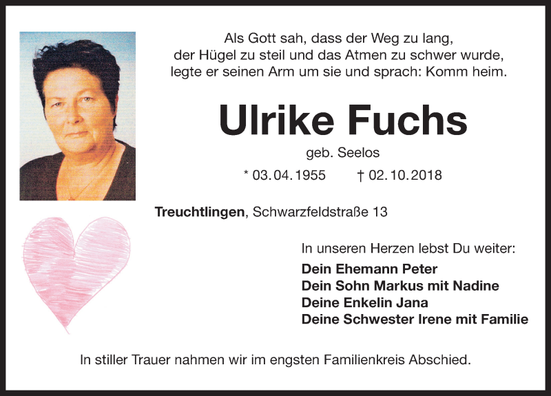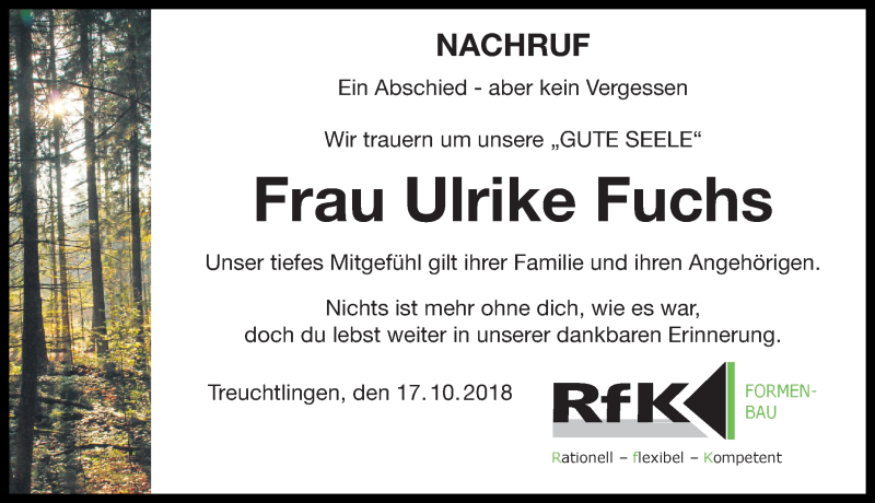 Hier finden Sie alle Traueranzeigen aus der Zeitung, die bisher für Ulrike Fuchs erschienen sind. Weitere Traueranzeigen, die in der Zeitung erscheinen, werden hier ebenfalls aufgelistet