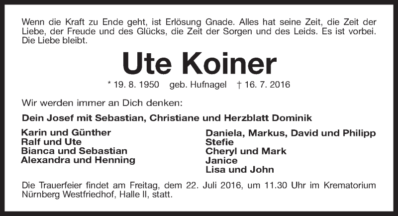 Hier finden Sie alle Traueranzeigen aus der Zeitung, die bisher für Ute Koiner erschienen sind. Weitere Traueranzeigen, die in der Zeitung erscheinen, werden hier ebenfalls aufgelistet