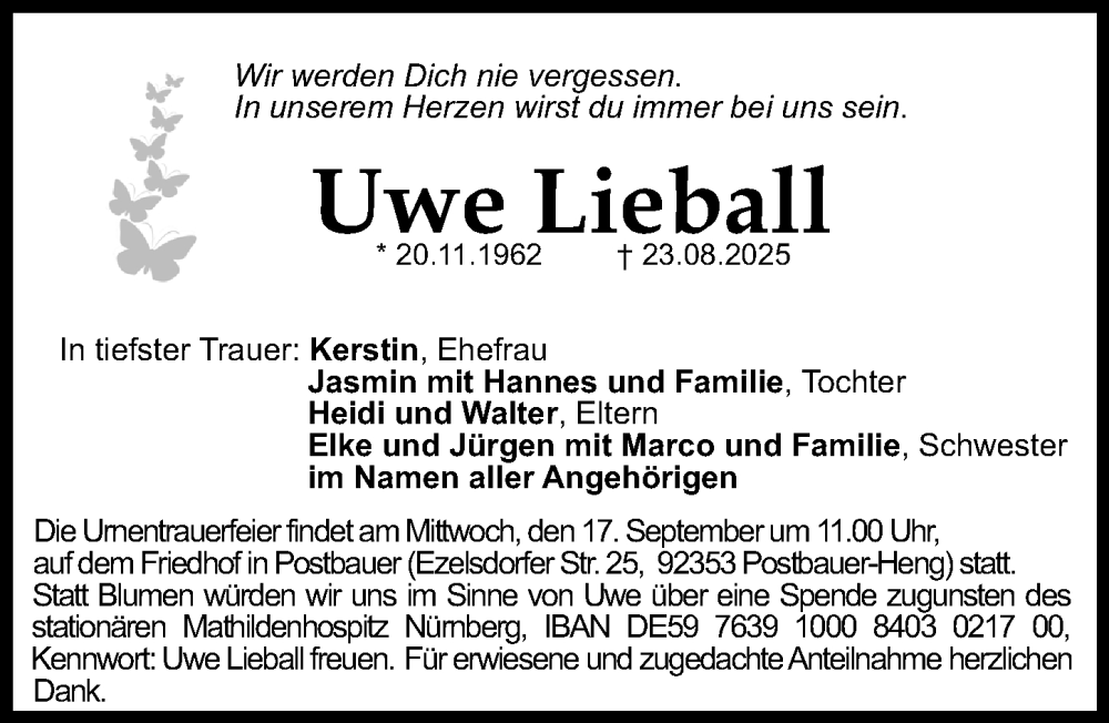 Hier finden Sie alle Traueranzeigen aus der Zeitung, die bisher für Uwe Lieball erschienen sind. Weitere Traueranzeigen, die in der Zeitung erscheinen, werden hier ebenfalls aufgelistet