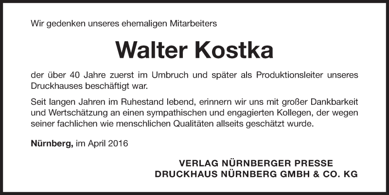 Hier finden Sie alle Traueranzeigen aus der Zeitung, die bisher für Walter Kostka erschienen sind. Weitere Traueranzeigen, die in der Zeitung erscheinen, werden hier ebenfalls aufgelistet