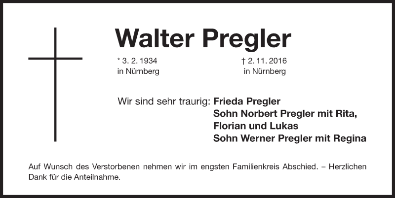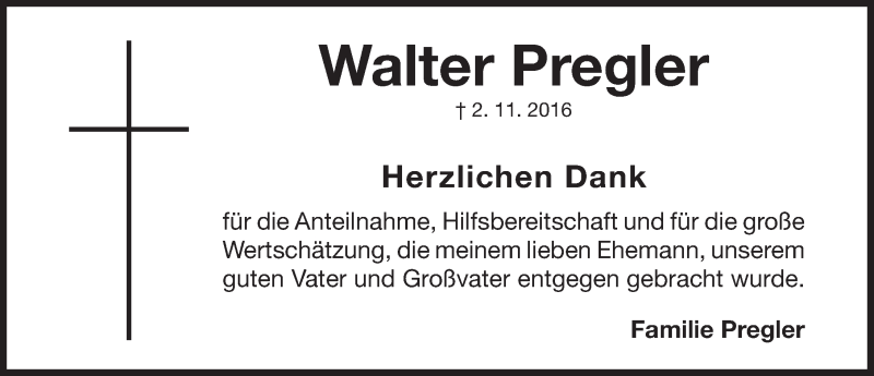 Hier finden Sie alle Traueranzeigen aus der Zeitung, die bisher für Walter Pregler erschienen sind. Weitere Traueranzeigen, die in der Zeitung erscheinen, werden hier ebenfalls aufgelistet