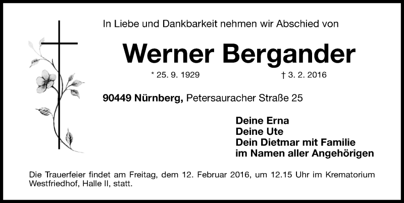 Hier finden Sie alle Traueranzeigen aus der Zeitung, die bisher für Werner Bergander erschienen sind. Weitere Traueranzeigen, die in der Zeitung erscheinen, werden hier ebenfalls aufgelistet