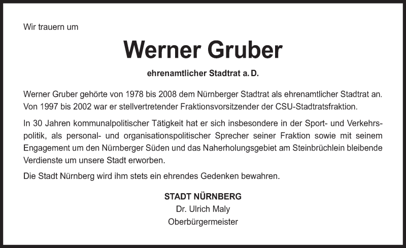 Hier finden Sie alle Traueranzeigen aus der Zeitung, die bisher für Werner Gruber erschienen sind. Weitere Traueranzeigen, die in der Zeitung erscheinen, werden hier ebenfalls aufgelistet