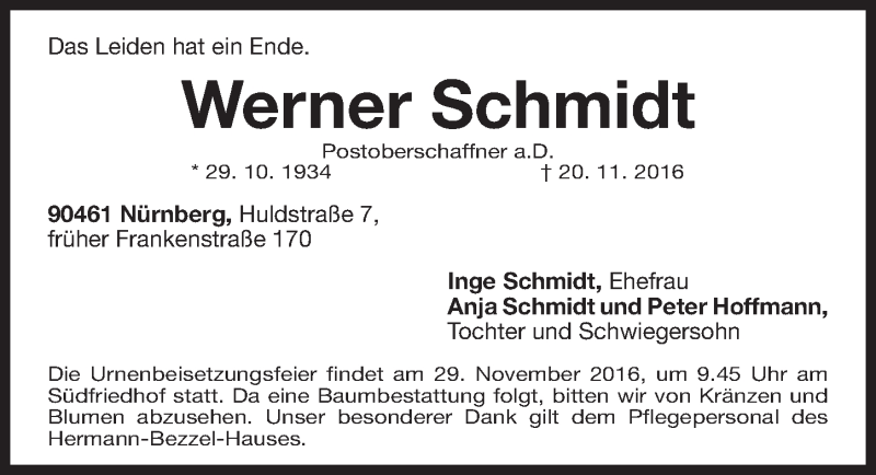 Hier finden Sie alle Traueranzeigen aus der Zeitung, die bisher für Werner Schmidt erschienen sind. Weitere Traueranzeigen, die in der Zeitung erscheinen, werden hier ebenfalls aufgelistet