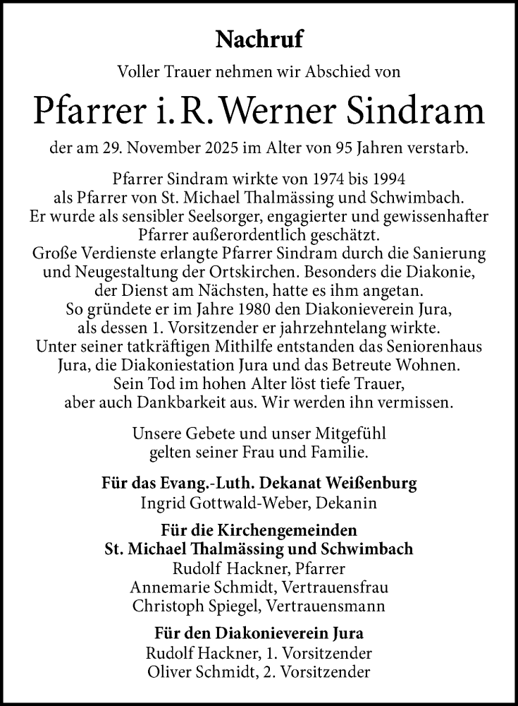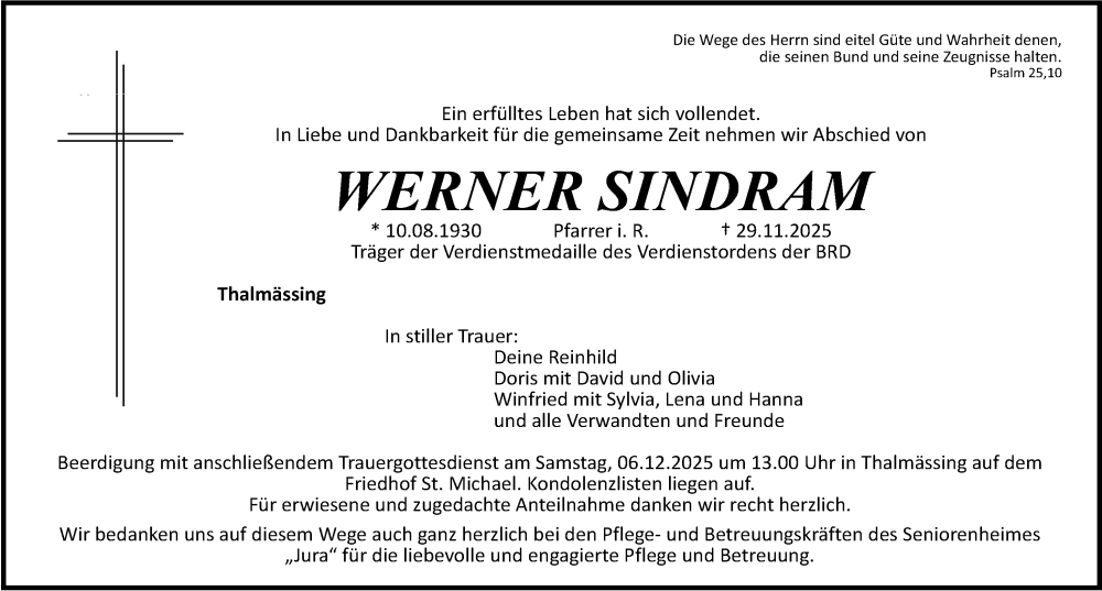 Hier finden Sie alle Traueranzeigen aus der Zeitung, die bisher für Werner Sindram erschienen sind. Weitere Traueranzeigen, die in der Zeitung erscheinen, werden hier ebenfalls aufgelistet