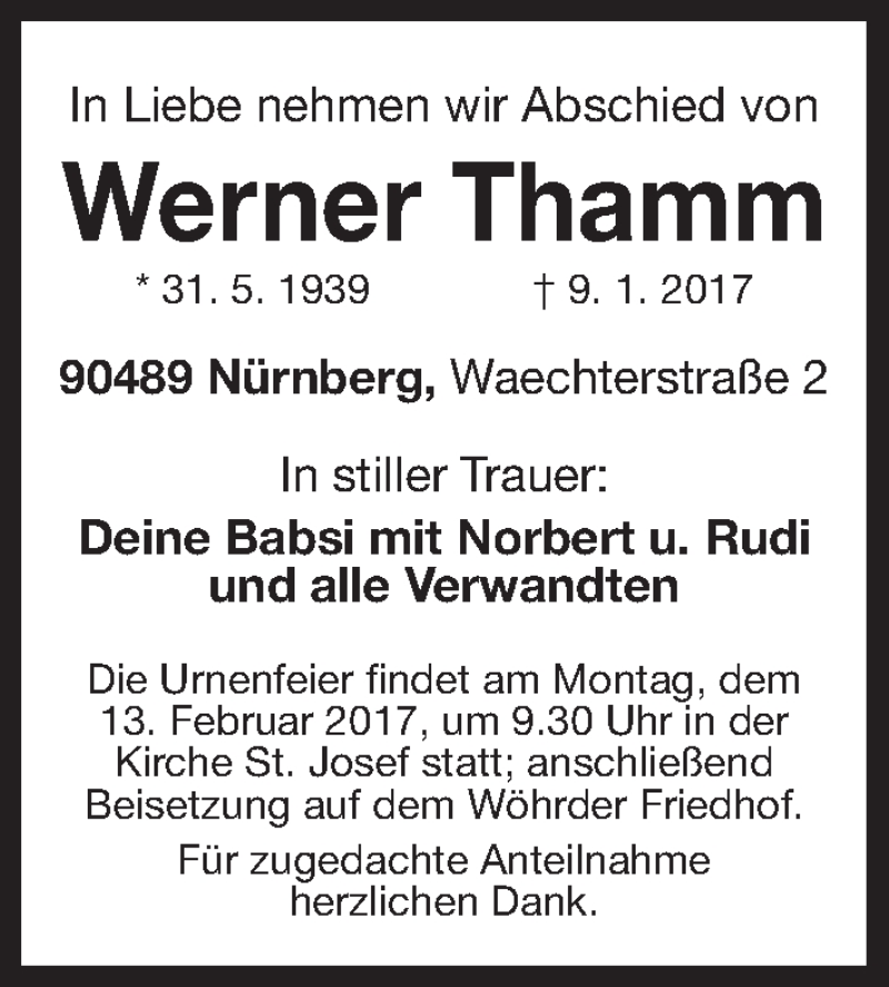 Hier finden Sie alle Traueranzeigen aus der Zeitung, die bisher für Werner Thamm erschienen sind. Weitere Traueranzeigen, die in der Zeitung erscheinen, werden hier ebenfalls aufgelistet