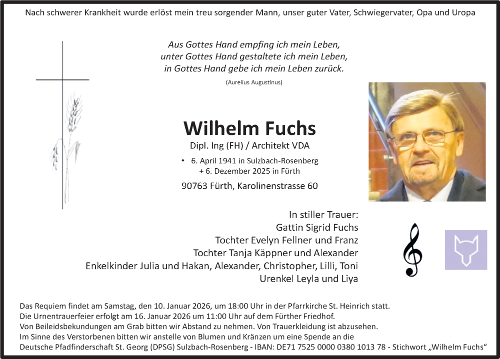 Hier finden Sie alle Traueranzeigen aus der Zeitung, die bisher für Wilhelm Fuchs erschienen sind. Weitere Traueranzeigen, die in der Zeitung erscheinen, werden hier ebenfalls aufgelistet