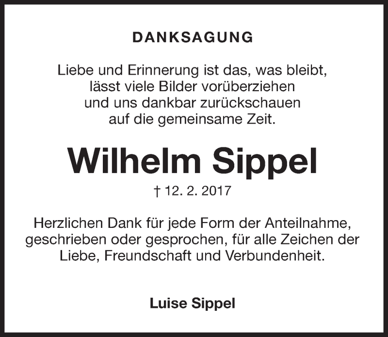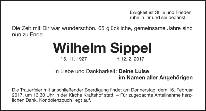 Hier finden Sie alle Traueranzeigen aus der Zeitung, die bisher für Wilhelm Sippel erschienen sind. Weitere Traueranzeigen, die in der Zeitung erscheinen, werden hier ebenfalls aufgelistet