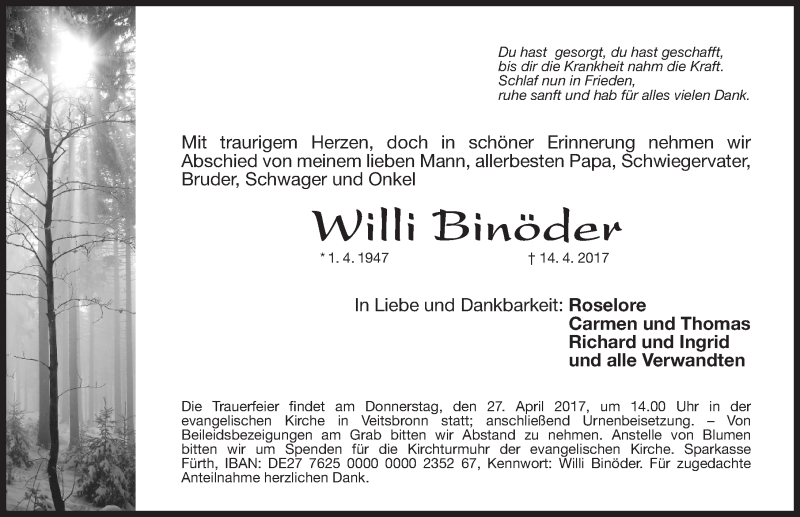 Hier finden Sie alle Traueranzeigen aus der Zeitung, die bisher für Willi Binöder erschienen sind. Weitere Traueranzeigen, die in der Zeitung erscheinen, werden hier ebenfalls aufgelistet