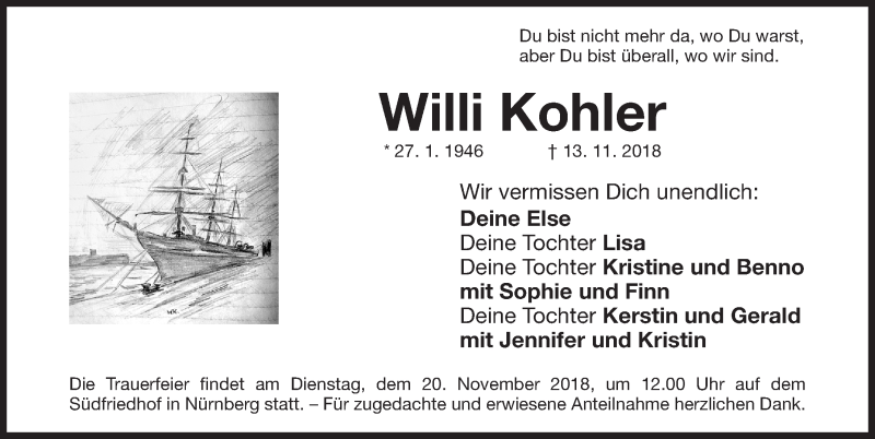 Hier finden Sie alle Traueranzeigen aus der Zeitung, die bisher für Willi Kohler erschienen sind. Weitere Traueranzeigen, die in der Zeitung erscheinen, werden hier ebenfalls aufgelistet